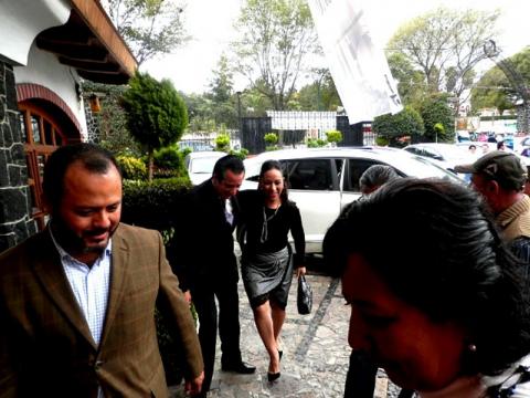 Aunque con doce minutos de retraso, luego de haber iniciado el primer informe de labores de Lorena Cuéllar Cisneros, hizo su arribo la senadora panista Adriana Dávila Fernández, para devolver la cortesía de la perredista que primero acudió a un acto similar.