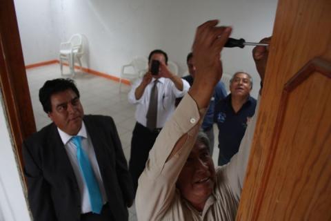 Acto seguido ambos funcionarios tomaron sendos destornilladores y se unieron al resto de trabajadores que desmontaban una puerta.
