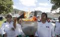 En su oportunidad cada uno de los representantes comunitarios fueron recibiendo el fuego que portaban los integrantes de la H. Junta patriótica de Totolac.