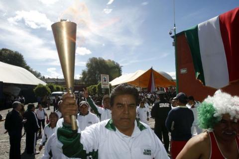 Totolac, Tlaxcala, 15 septiembre 2014.- Luego de recibir el fuego simbólico de manos de Mariano González Zarur, Gobernador de Tlaxcala; Erasmo Atonal Ortiz Presidente Municipal de Totolac, hizo llegar este fuego personalmente a las nueve comunidades que conforman el municipio, en un recorrido que duró aproximadamente dos horas a lo largo de las calles y avenidas de Totolac.