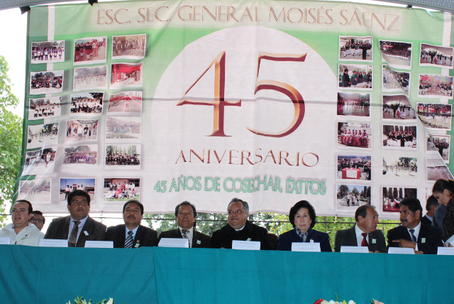 Huamantla Tlaxcala.- Con un gran acto cívico y sociocultural, llevado a cabo en la escuela secundaria Moisés Sáenz, se iniciaron los festejos por el 45 aniversario de dicha institución educativa en la cual el invitado de honor fue el presidente municipal Alejandro Aguilar López quien fungió como padrino de develación de la placa conmemorativa en reconocimiento al trabajo de profesores, padres de familia y alumnos en el marco conmemorativo a la fundación de dicho plantel considerado como la escuela de nivel secundaria más importante del municipio.