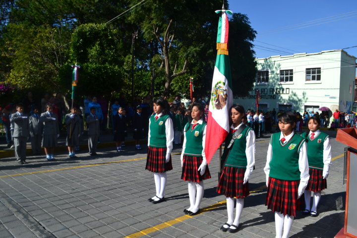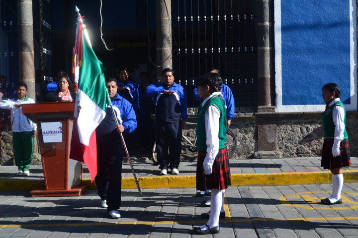 El alcalde Polvo Rea dio la bandera nacional a la escolta del Centro de Estudios Científicos y Tecnológicos del Estado (Cecyte) Plantel 16, y junto con trabajadores del Ayuntamiento se arrancó este desfile conformado por más de 15 instituciones de nivel básico así como medio superior que se encuentran en Tlaltelulco, acción que aplaudieron los asistentes.