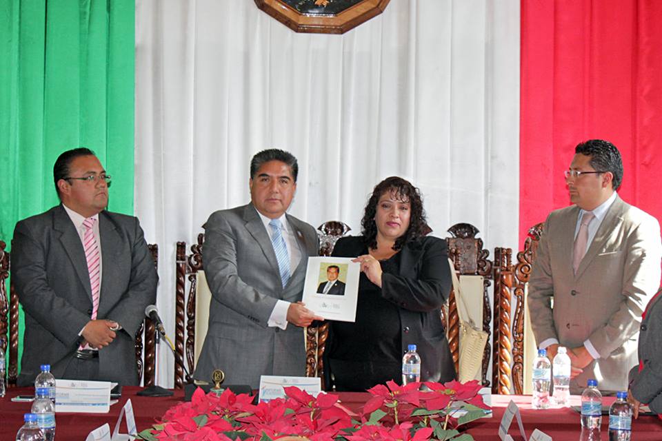 Calpulalpan Tlaxcala .- La síndico Municipal, Anabel López Macías, recibió de manos del Alcalde, el informe de acciones, obras y apoyos que realizó durante el mes de Enero al mes de Diciembre del presente año, en el que se les detalla cada una de las acciones realizadas en el ejercicio 2014.