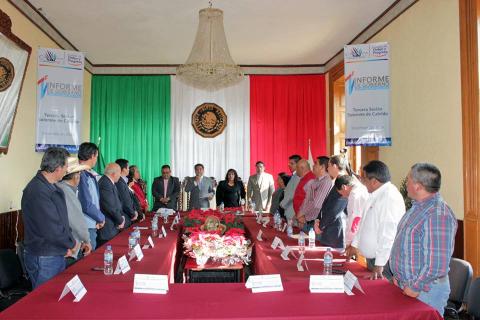 Con la presencia de Regidores, Presidentes de Comunidad, Funcionarios Municipales y Ciudadanos, para dar cumplimiento a lo que marca el Artículo 41 fracción XXI de la Ley Municipal del Estado, el Alcalde entregó su Primer Informe de Gobierno en donde señala de manera detallada sobre el estado que guarda la presente Administración Pública Municipal, reafirmando su compromiso de transparentar la utilización de los recursos públicos, promoviendo el trabajo responsable, profesional y efectivo de la Administración.