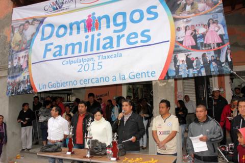 En el esfuerzo de promover en Calpulalpan el deporte a todo nivel y sin límite de edad se implementa el Programa “Domingos Deportivos en Familia”, en el marco del Programa “Domingos Familiares” al que asistieron más de 500 personas este fin de semana y cuya finalidad es consolidar la unión del núcleo familiar a través de la actividad física y los deportes practicados de manera segura y gratuita, misma que se llevara también a las Comunidades del Municipio, asevero el Alcalde Vicente Hernández Roldán.