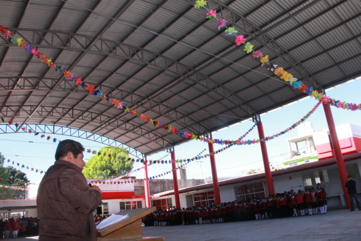 La escuela primaria Benito Juárez de la Trinidad Tenexyecac del municipio de Ixtacuixtla fue beneficiada con una techumbre donde mas 400 alumnos disfrutaran esta obra.
