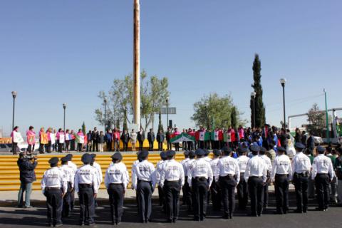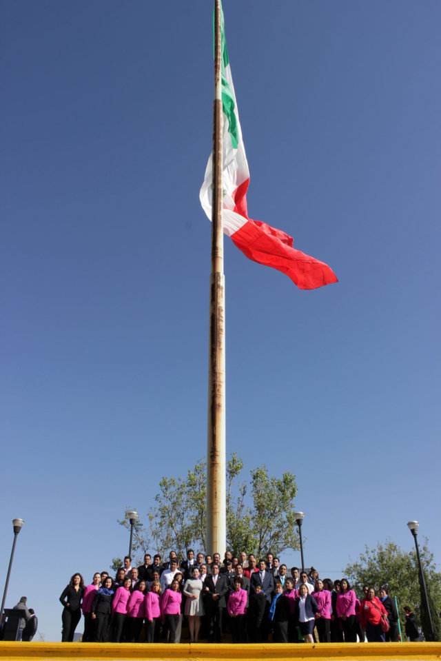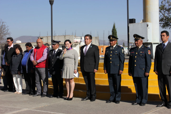 Durante el acto el Secretario del H. Ayuntamiento, Ricardo Daniel Aparicio Solórzano, hizo una reseña histórica de las diferentes Banderas que a lo largo de la historia han sido insignias de México, haciendo alusión también a los emblemas que en la época anterior a la Conquista, usaban nuestros antepasados para identificar sus tribus y creencias. Recalcando que La actual Bandera de los Estados Unidos Mexicanos fue adoptada desde el 16 de Septiembre de 1968 y está segmentada en 3 partes iguales cada una de un color distinto verde, blanco y rojo y con el escudo de armas de México en el centro de la franja blanca, siendo decretado por el entonces Presidente de la Republica, Gustavo Díaz Ordaz, en lo adelante, no hacer más cambios al diseño del Lábaro Patrio.