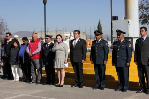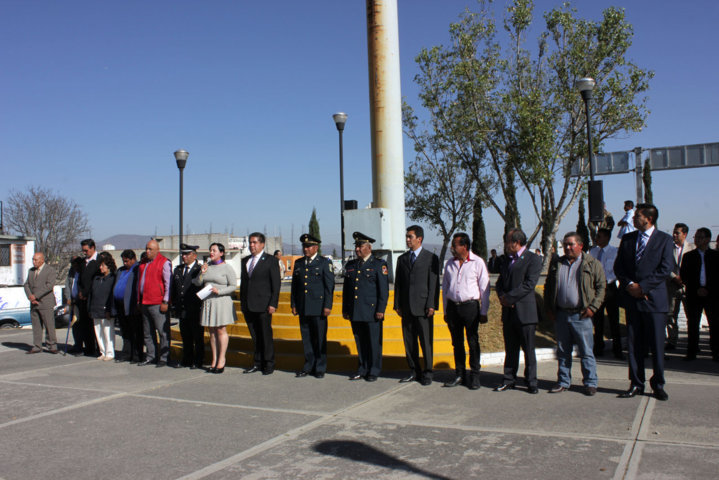 Calpulalpan Tlaxcala .- El H Ayuntamiento de Calpulalpan Presidido por Vicente Hernández Roldán, acompañado por la Presidenta del SMDIF, Araceli Ramírez López; el Capitán 1ero de Transmisiones Rolando García Norberto en Representación de la 23 Zona Militar, así como, el Jefe de Participación Ciudadana de la Policía Estatal, Edgar Hernández Pérez, Funcionarios Públicos e integrantes del H. Ayuntamiento y Ciudadanía en general se dieron cita en el Asta Bandera Monumental en la Colonia Francisco Sarabia, donde rindieron honores en conmemoración de un aniversario más de la Institucionalización del día de la Bandera Mexicana.