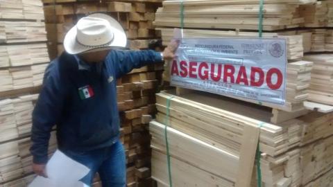 Por ello, el personal de PROFEPA aseguró 308.581 m3 de madera en escuadría de pino y 271.369 m3 de madera en escuadría de encino, cantidad de materia forestal que se encontró en el lugar y tampoco demostró la legal procedencia.