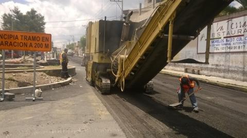 Los trabajos dieron inicio en días pasados y está previsto concluir en aproximadamente dos meses, dando avance inicialmente entre Avenida Hidalgo y la Avenida Morelos en vísperas de la Fiesta Patronal de la localidad, por lo que iniciaron con el levantamiento de carpeta asfáltica obsoleta, para proseguir con el encarpetamiento con mezcla asfáltica, con un avance, hasta ahora del 75 por ciento en tramo céntrico.