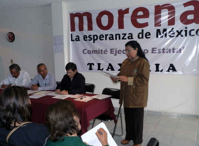 El movimiento regeneración nacional registró esta mañana a Martha Palafox Gutiérrez como aspirante a promotora de la soberanía nacional en Tlaxcala por Morena.