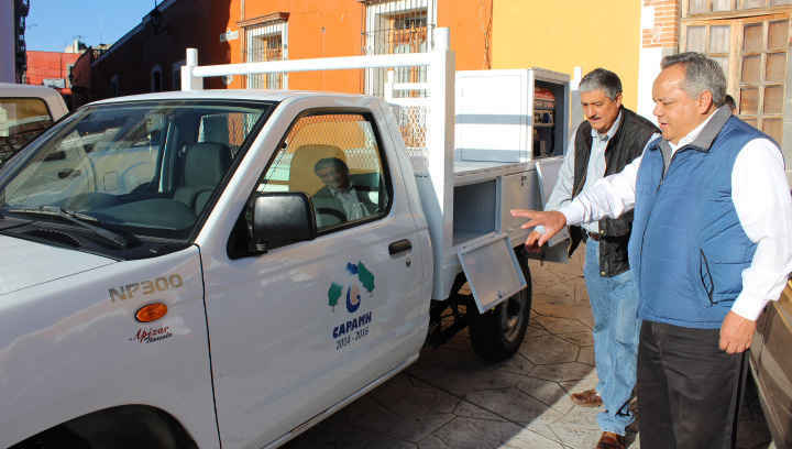 Por ello, en esta ocasión se adquirió una  nueva unidad y se  equipó otra  del parque vehicular de la Comisión de Agua Potable y Alcantarillado del Municipio de Huamantla (CAPAMH), la cual está dotada con caballetes para carga de tubos, una gaveta de herramientas y otra para cables de diferentes dimensiones,  un tornillo con banco integrado, una bomba para lodo, generador eléctrico y tres gavetas individuales para guardar material. Así mismo se integraron dos nuevas unidades más para trabajo de campo.