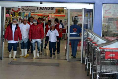 En breve, las 7 áreas de perecederos, los 7 departamentos varios y los dos espacios administrativos quedaron desocupados, en tanto personal de seguridad del autoservicio vigilaba las entradas durante 2 minutos con 45 segundos, tiempo que duró el simulacro.
