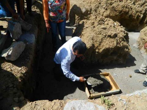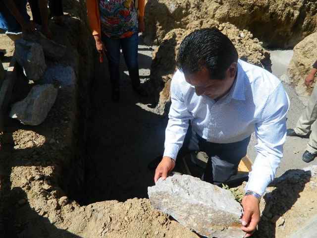 Coloca Luna Vázquez primera puedra de lo que será la Escuela Primaria Comunitaria "Benito Juárez" en Atotonilco.