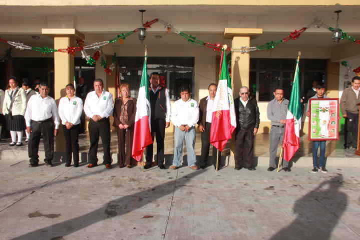 El acto cívico fue realizado por alumnos de la escuela primaria Emiliano Zapata, posteriormente el munícipe acompañado de los miembros de la junta patriótica, regidores, comisariado ejidal, directores de las diferentes áreas y personal administrativo municipal realizaron la fijación del Bando Solemne en la fachada de la presidencia municipal.