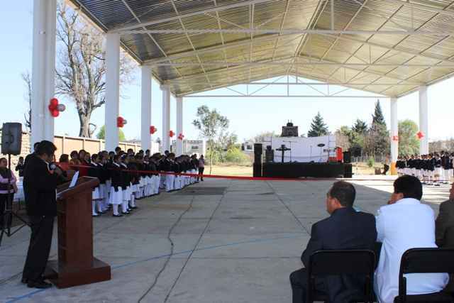 "La Telesecundaria Miguel N. Lira, de la comunidad de Xochicalco se viste de gala en esta fiesta, porque hoy se inaugura la techumbre del espacio deportivo que tiene como finalidad contribuir a las actividades de educación física, artísticas y académicas para que se lleven a cabo dentro de un ambiente de trabajo libre de las inclemencias del tiempo.