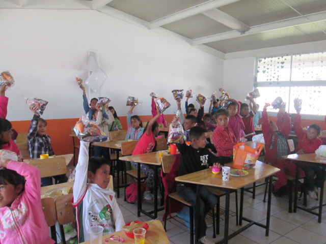 La presidenta honorifica y el personal del SMDIF, fueron los encargados de entregar a cada niño un obsequio (dulcero), donde algunas de estas escuelas están pegadas a la falda de la Malinche.