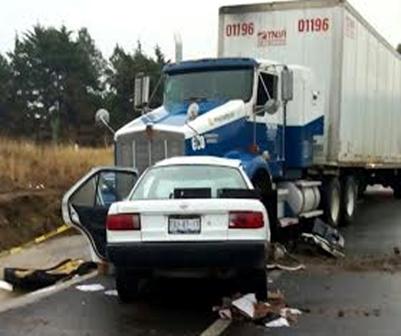 A la altura del kilómetro 16 de la autopista a Puebla, Acuitlapilco y San Diego Metepec, se registró un accidente donde un vehículo Nissan tipo Tsuru color blanco se impactó de frente contra un tráiler dejando como saldo dos personas prensadas de las cuales el chofer fue quien perdió la vida.