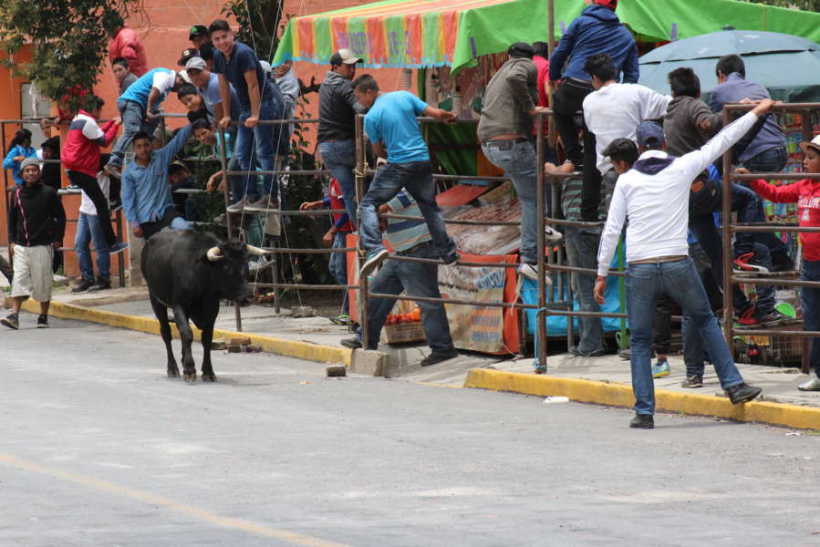 Los novillos se dejaron ver por la calle principal del municipio para este espectacular evento, en el que decenas de jóvenes y adultos demostraron su valor y arrojo al provocar a los astados que fueron elegidos para esta tocatlanada, en la que participaron vecinos de esta demarcación y visitantes de distintas partes del estado.