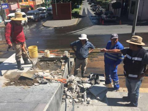 La directora general del organismo, Eliuth Sánchez Zamora indicó que los trabajos de reparación tardarán un poco debido a que la tubería está cubierta con la fuente de las escalinatas, lo que dificulta la detección de la fuga.