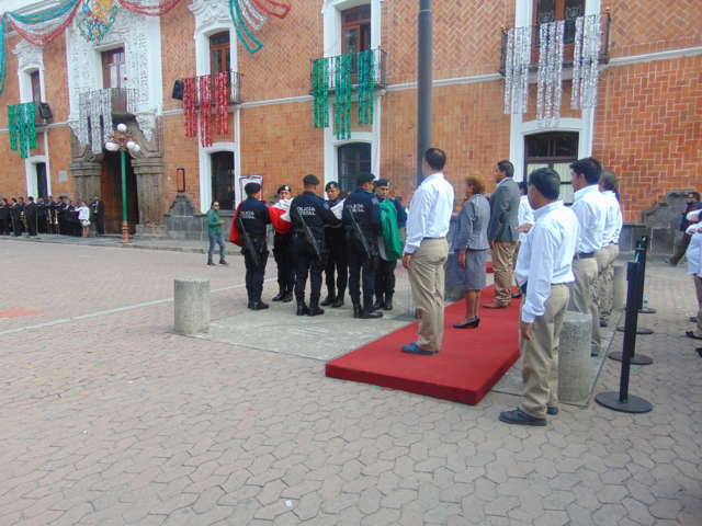 Acompañado por su cabildo y funcionarios municipales, Gómez Sanluis en su mensaje dijo que esta plaza de la Constitución es un lugar emblemático de los tlaxcaltecas, celebramos uno de los acontecimientos más importante en la historia de nuestro país, expreso el edil