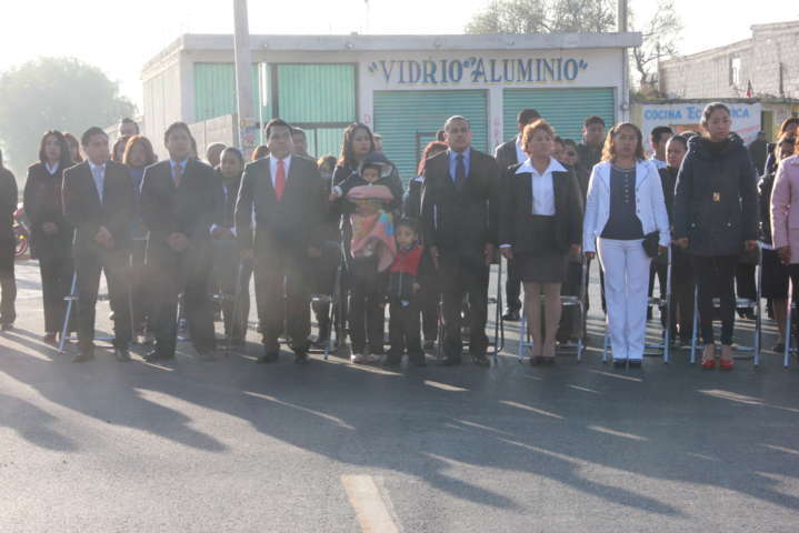 La ceremonia inicio con los honores a la bandera, donde se realizó el Izamiento de la bandera en el asta ubicada en el Boulevard Ignacio Zaragoza, a cargo de los alumnos de la secundaria técnica II “Lic. José Miguel Guridi y Alcocer”.