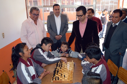 A lo largo de la visita, Camacho Higareda conoció las actividades que realiza el estudiantado, como activación física al aire libre, trabajo en el invernadero y actividades en las aulas. También saludó a niñas y niños que gustan del ajedrez.