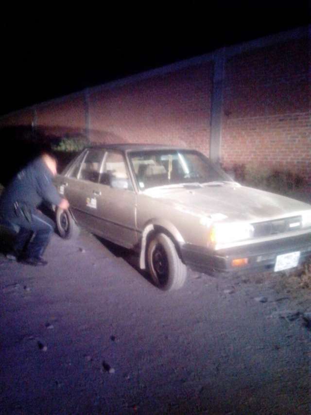 Uno de los Policías Municipales solicitó vía radio la consulta del vehículo marca Nissan, tipo Tsuru II modelo 1990 con placas de circulación del estado de Tlaxcala, el cual contó con reporte de robo vigente desde el día 5 de marzo de este año.