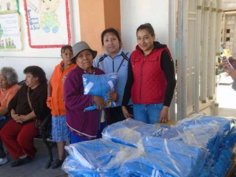 La Presidenta municipal de San Lorenzo Axocomanitla, Martha Palafox Hernández junto a regidores, está mañana entregaron uniformes deportivos al grupo de adultos mayores que forman parte del Sistema Municipal de Desarrollo Integral de la Familia (SMDIF).