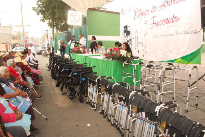 En apoyo a los sectores más vulnerables de la sociedad, ya que una de las principales metas es hacer del municipio de Santa Ana Nopalucan, un gobierno incluyente, el alcalde y la titular del SMDIF, entregaron sillas de ruedas, andaderas y  bastones a grupos vulnerables de la región.