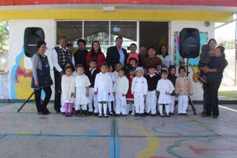 El presidente municipal de Nativitas Oscar Murias Juárez entrego un equipo de sonido al jardín de niños “Rita Corona de la comunidad de “Guadalupe Victoria”, donde el alcalde menciono que apostarle a la educación es apostarle a la superación del municipio, reitero.