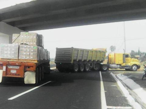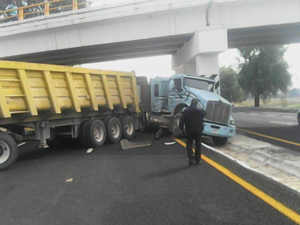 Al lugar llegaron los servicios de emergencias de Ixtacuixtla para valorar a los conductores de dos tractocamiones que colisionaron sobre la Tlaxcala- Texmelucan.