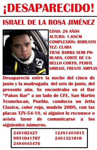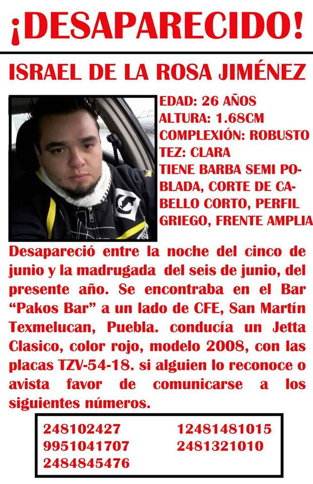 De acuerdo con información oficia, el joven identificado como Israel de la Rosa, salió de un bar la madrugada del cinco de junio en compañía de un hombre y una mujer.