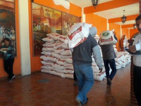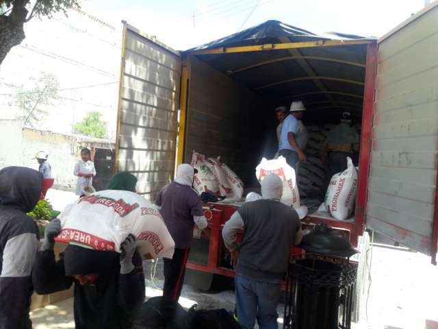En espera de ser entregado a productores de municipio, el día de hoy arribaron las más de 50 toneladas de Fertilizante UREA a la Presidencia Municipal de San Damián Texóloc, las cuales beneficiarán a 105 campesinos.