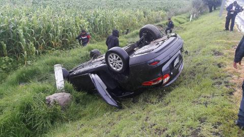 A pesar de que un vehículo Renault Fluence color negro volcó, su tripulante no resultó con lesiones de consideración.