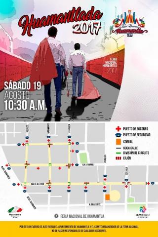 Al termino del desfile se cerrarán las calles del circuito de manera definitiva, con el objetivo de que las autoridades de Seguridad Pública y Protección Civil de los dos niveles de gobierno hagan las inspecciones pertinentes de la zona, cabe mencionar que los cajones que resguardarán los 17 toros estarán ubicados desde la madrugada del viernes en las calles que conforman el recorrido de “Huamantlada”.