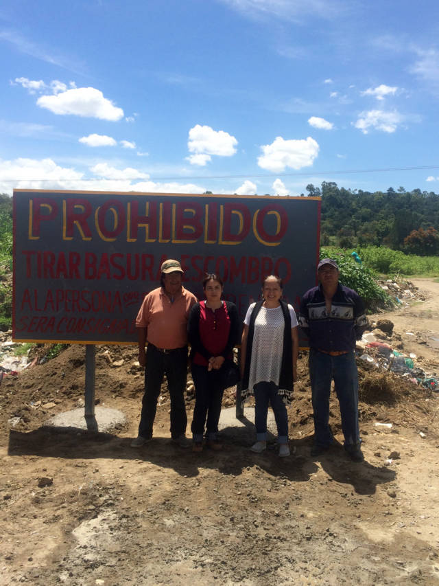 Por iniciativa del Director de Ecología, C. Armando Hernández Hernández en colaboración con la primera Regidora Maricarmen Hernández Hernández y el Síndico Municipal C. Ignacio Tecpa Munive; se emprendió esta acción que permitirá disminuir la contaminación del lugar en lo que respecta a basura y a la proliferación de animales callejeros que representan un problema de salud para la población. Además de hacer de conocimiento a las personas que requieran tirar escombro, se establecieron dos lugares donde pueden hacerlo: en La Ocotera y en un espacio situado en el camino que va para la población de San Bartolomé Tenango.