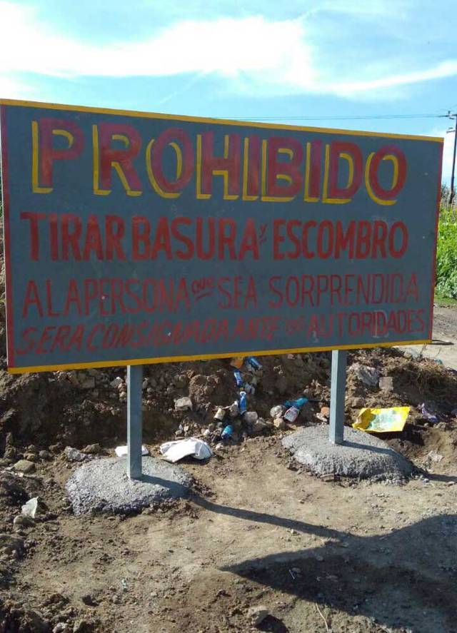 Como parte de las actividades realizadas en el Ayuntamiento de Texóloc en el área de Ecología, en días pasados se colocó un letrero para prohibir tirar basura y escombro en un espacio posterior al panteón municipal, el cual era utilizado como basurero.