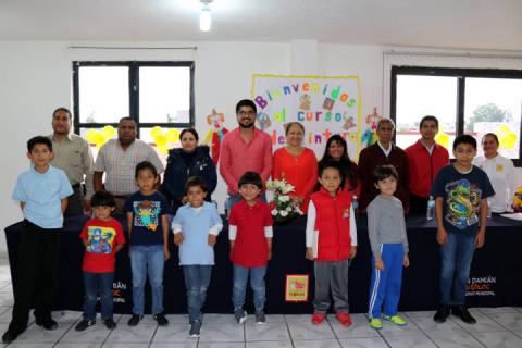 Trabajo que realiza la presidencia a través del DIF municipal, el día de ayer por la tarde Maribel Cervantes Hernández inauguró el curso de pintura con niños de 7 años en adelante y a cargo de la reconocida profesora Galdina Galicia Acoltzi, quien anteriormente ya había participado con este tipo de cursos en el municipio, misma que con apoyo de sus jóvenes alumnos realizaron los murales que se conservan hasta el día de hoy en los portales de la presidencia municipal.