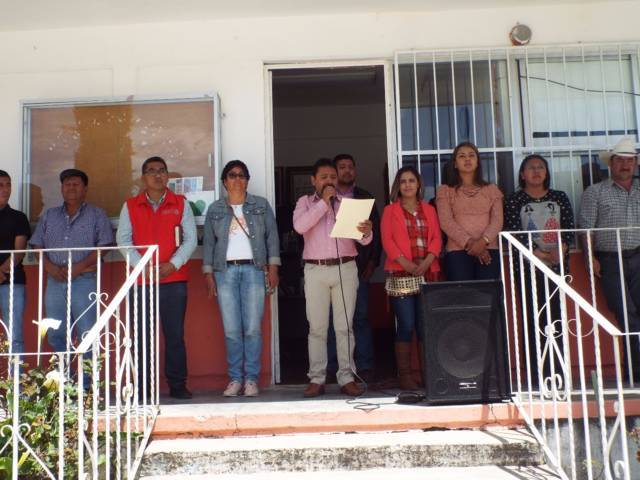 El mandatario municipal estuvo acompañado de miembros del cabildo, representantes de la Sedesol, además del “club de migrantes de Hueyotlipan”, asociación de padres de familia, docentes y alumnos de la escuela beneficiaria.