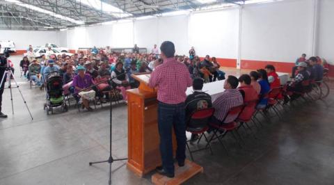 Los beneficiarios del programa se dieron cita en el auditorio municipal de Nanacamilpa, donde recibieron vales de material para construcción que se aplicarán en ocho pisos, 25 techos y 49 en pisos y techos, todo esto con un monto de inversión de un millón 81 mil 489 pesos.