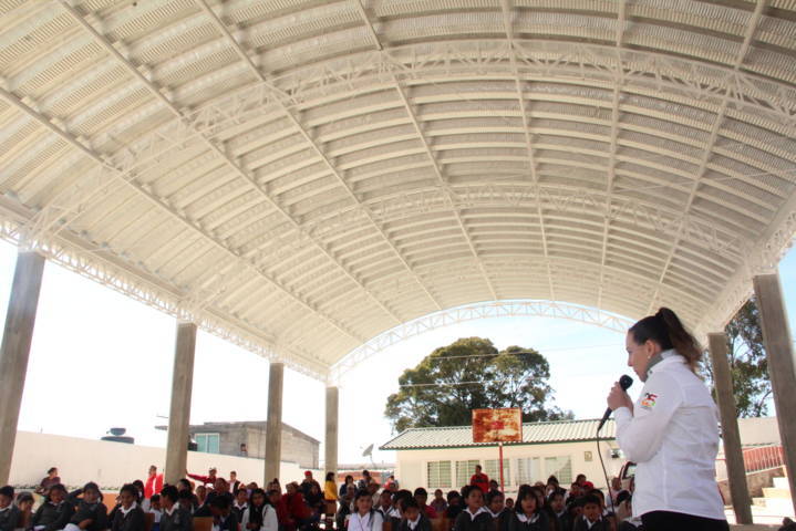 La delegada de la SEDESOL en Tlaxcala, resaltó la importancia que debe tener una techumbre, ya que no pasaran horas en el rayo del sol, ya que muchas horas causa daños en la salud, ahora realizaran sus homenajes cívicos, eventos culturales y deportivos pero sobretodo en las clausuras de los ciclos escolares ya no rentaran lonas para su evento, mejorara al 100 por ciento su aprendizaje.