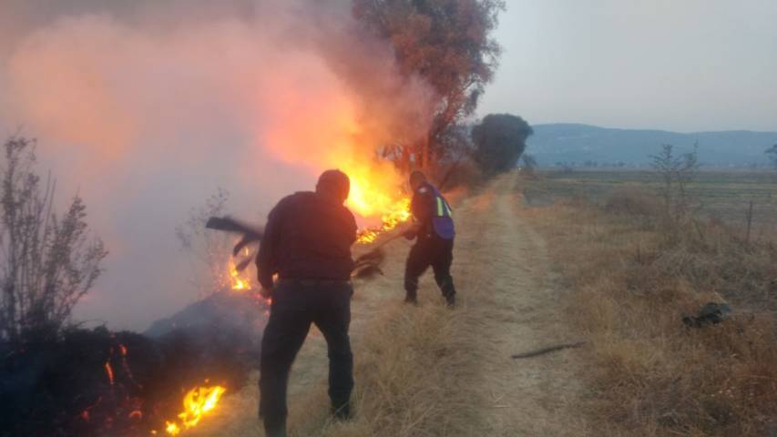 Tras un reporte recibido en la comandancia de San Damián Texóloc el día de ayer alrededor de las 4 pm, compañeros de Seguridad Municipal acudieron a sofocar un incendio que rápidamente se propagaba en el predio denominado “La Lagunilla”.