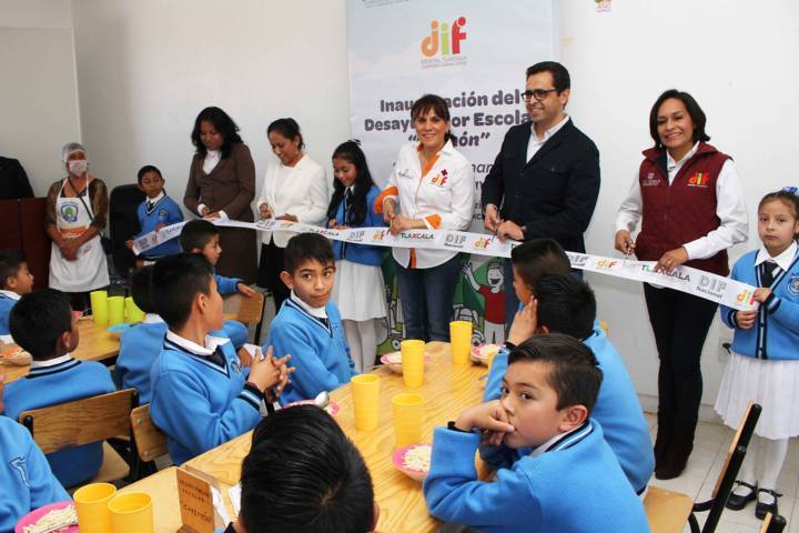 La Presidenta Honorífica del Sistema Estatal DIF, Sandra Chávez Ruelas, inauguró el desayunador escolar de la primaria “Nicolás Bravo”, en la comunidad de San Simeón Xipetzinco, en Hueyotlipan, el cual beneficiará a 345 alumnos.