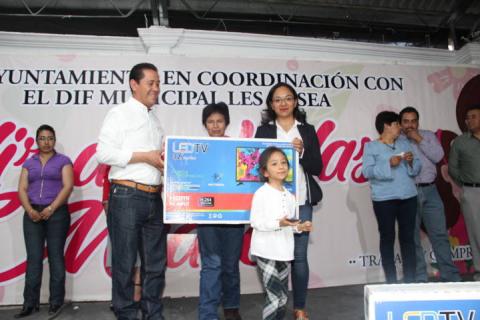 El alcalde acompañado de su esposa, su pequeña hija, así como los integrantes del cabildo dieron paso a la rifa que consistió en más de 80 regalos todos de buena calidad.