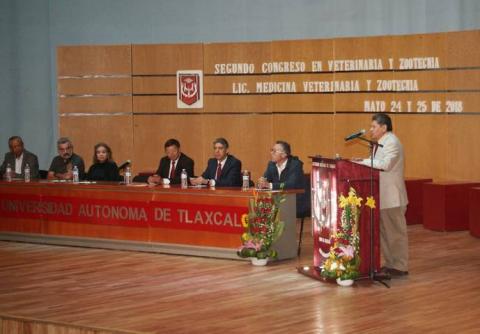 Tlaxcala, Tlax., a 25 de mayo de 2018.- Con el objetivo de brindar formación continua a estudiantes, egresados y profesionales de áreas afines, mediante el acceso a investigaciones de especialistas reconocidos a nivel nacional e internacional sobre diferentes tópicos de interés, la Universidad Autónoma de Tlaxcala (UAT), llevó a cabo el “2do. Congreso de Medicina Veterinaria y Zootecnia”, coordinado por la Facultad de Agrobiología, efectuado en las instalaciones del Teatro Universitario, en la que se expusieron 12 ponencias, siendo la inaugural la impartida por el Dr. Fernando Utrera Quintana, del Colegio de Posgraduados, con el tema: “El cambio climático y su efecto en las abejas”.