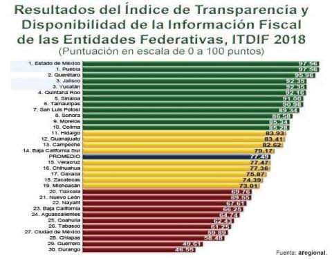 Tlaxcala se ubicó como una de las entidades que peor tienen disponibilidad y calidad de la información financiera y fiscal, pues en la evaluación del Índice de Transparencia y Disponibilidad de la Información Fiscal (ITDIF) 2018, elaborada por la consultoría Aregional, obtuvo 69.76 de los 100 puntos disponibles.
