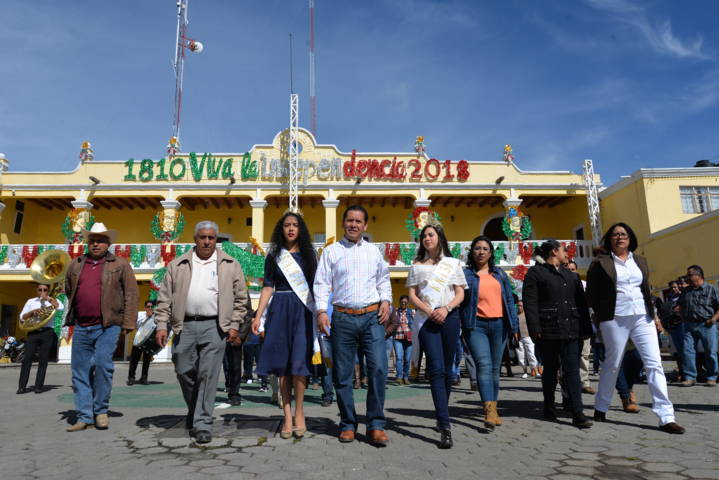 Sánchez Flores, encabezó el inicio de la conmemoración del CCVIII Aniversario de la Independencia de México, acompañado del Comisario Ejidal, Quirino Claudio Hernández Castillo, por la Reina Yamile del Razo Romano, la Princesa Paola Muñoz Juárez, e integrantes del Cabildo y coordinadores de las diferentes áreas.
