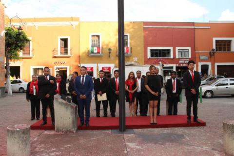 Durante el homenaje cívico el alcalde estuvo acompañado de su esposa Patricia Pérez Pérez presidenta honorifica del DIF municipal, miembros del cabildo, presidentes de comunidad, directivos y trabajadores del Ayuntamiento.
