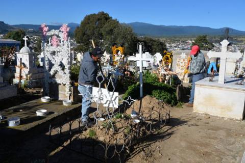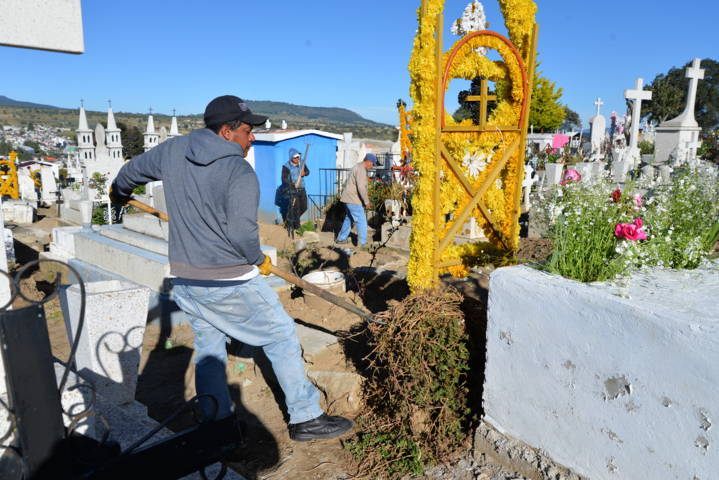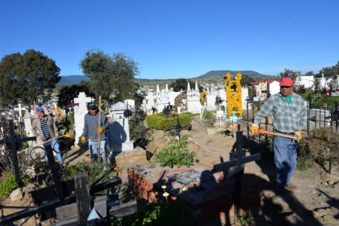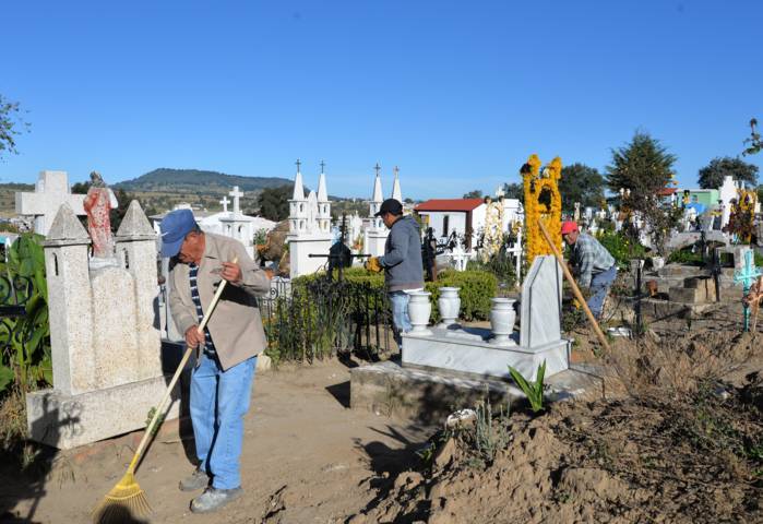 Trabajadores de la Dirección de Servicios Municipales de Nanacamilpa iniciaron labores de limpieza en los dos panteones de la cabecera municipal, con el fin de que estén en buenas condiciones para recibir a más de tres mil visitantes durante las celebraciones de Día de Muertos y Todos Santos.